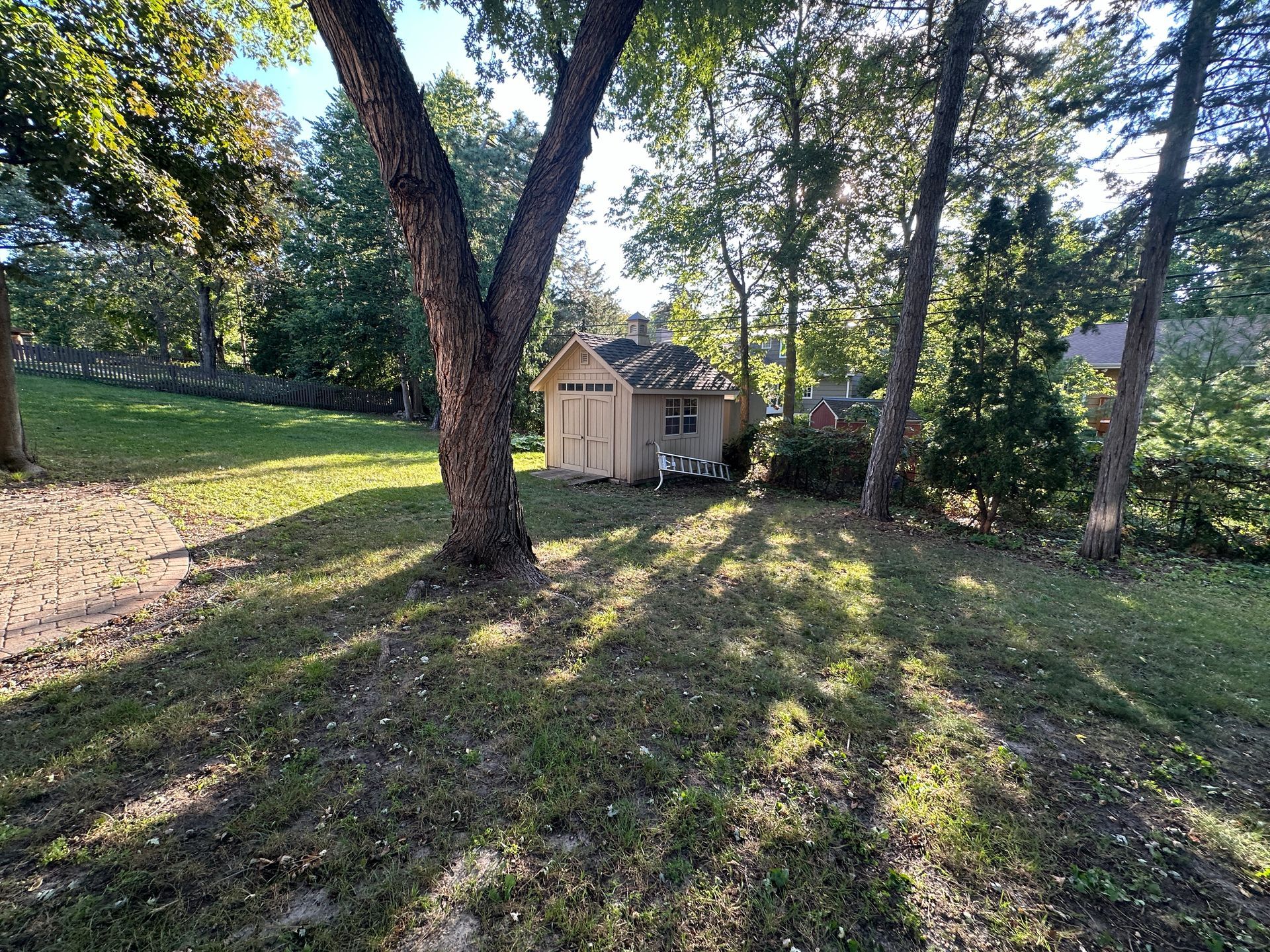 Shade and growing conditions determine what's realistic. How much shade exists from mature trees? Can grass realistically grow in all areas, or are some sections too shady for any grass to thrive? Some areas might need landscape alternatives instead of lawn.
