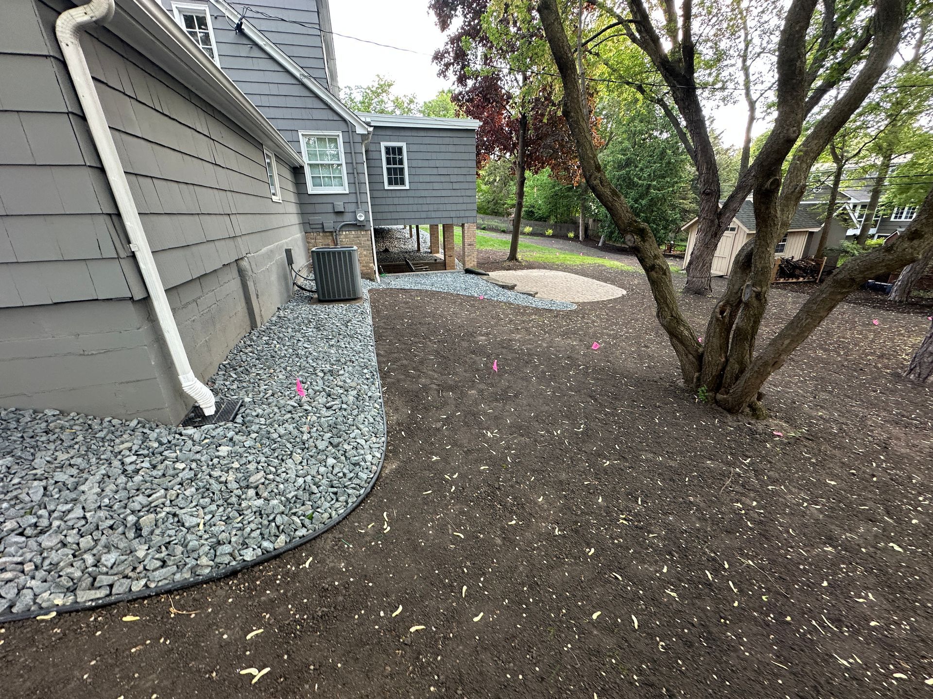 Why this step matters: Erosion washes away topsoil you just brought in for grading. Water pooling prevents grass from establishing in those areas - you'll have bare spots no matter how much you seed. Steep slopes won't hold seed or sod effectively. Fix these issues once, protect your lawn investment long-term. Better to address drainage properly than redo lawn work after it gets damaged.