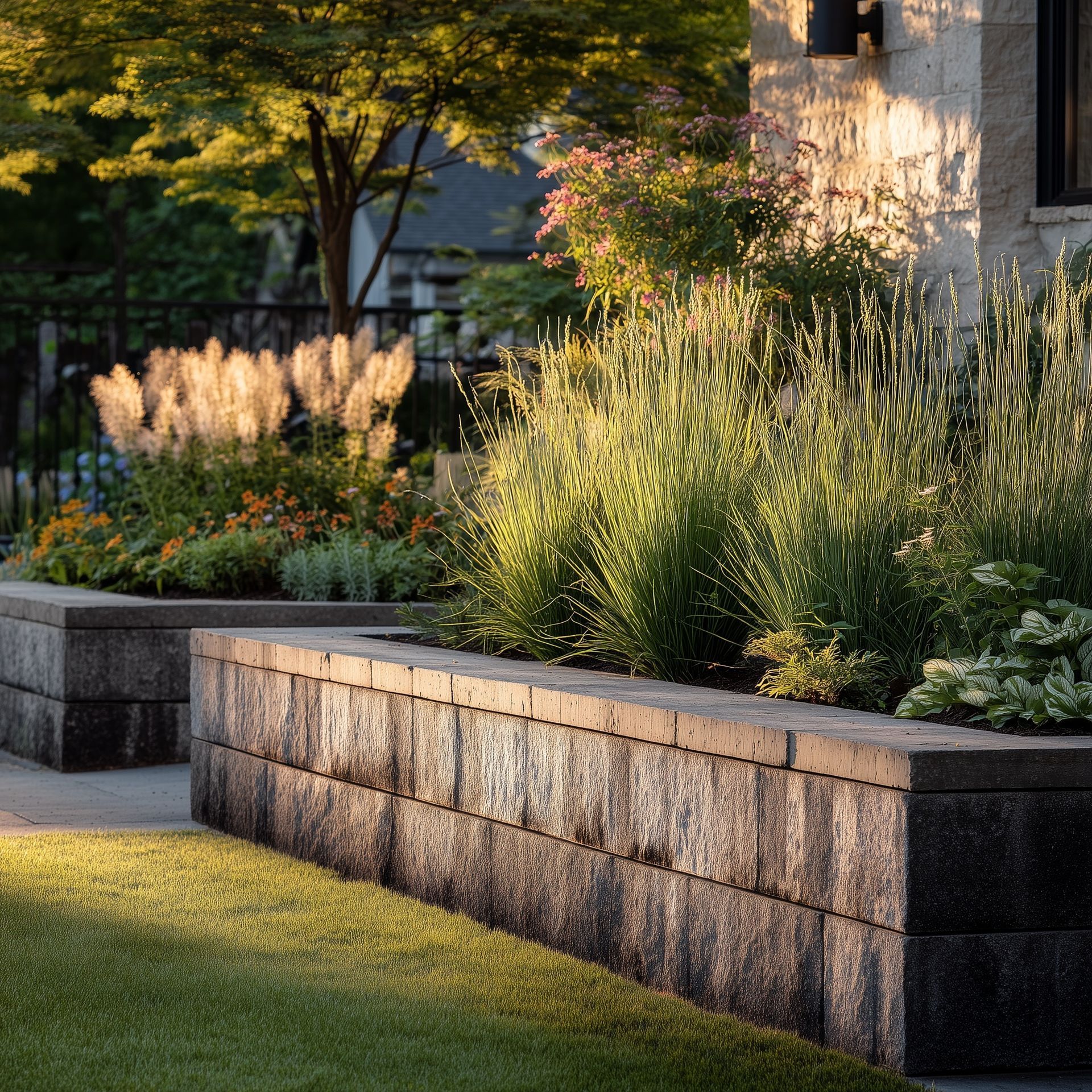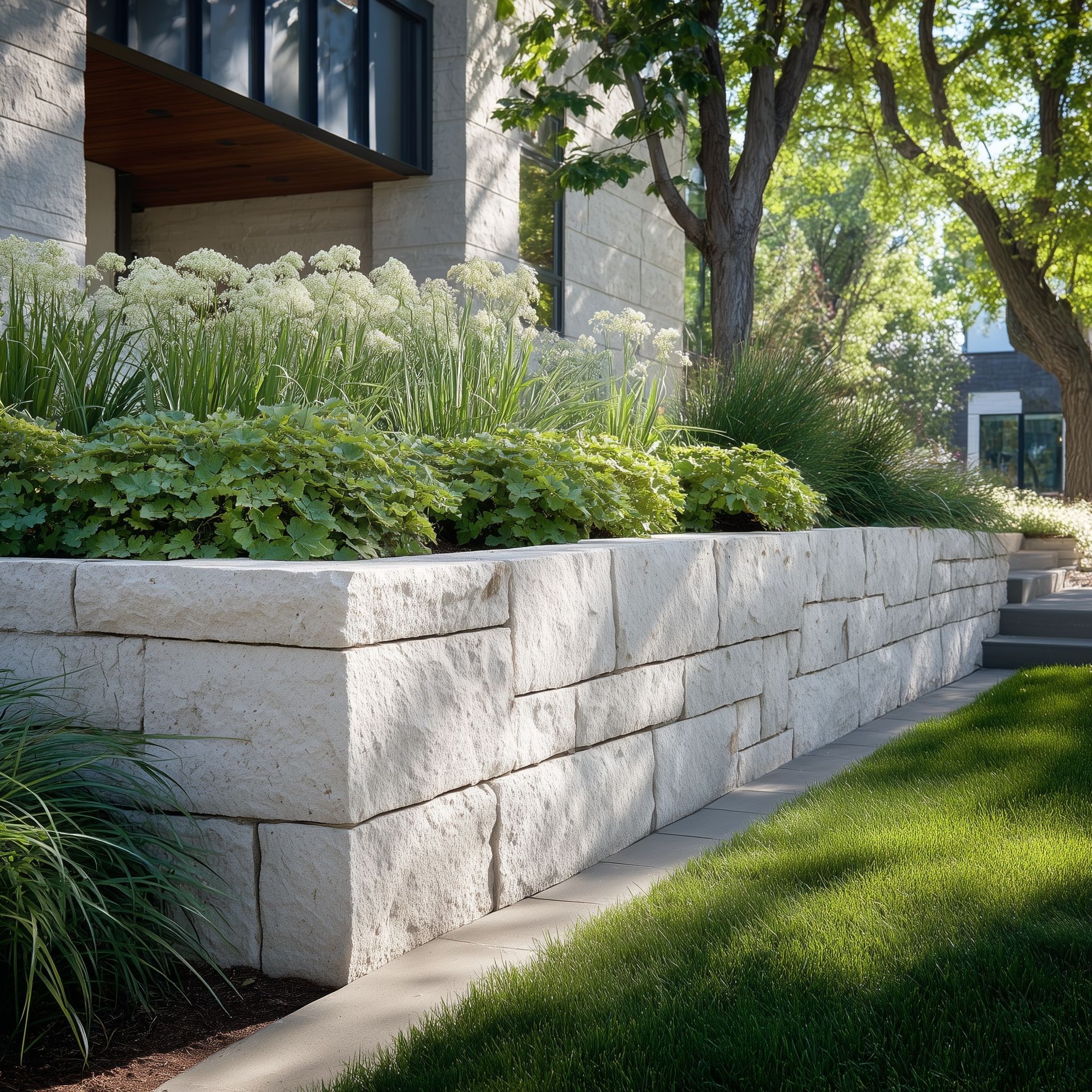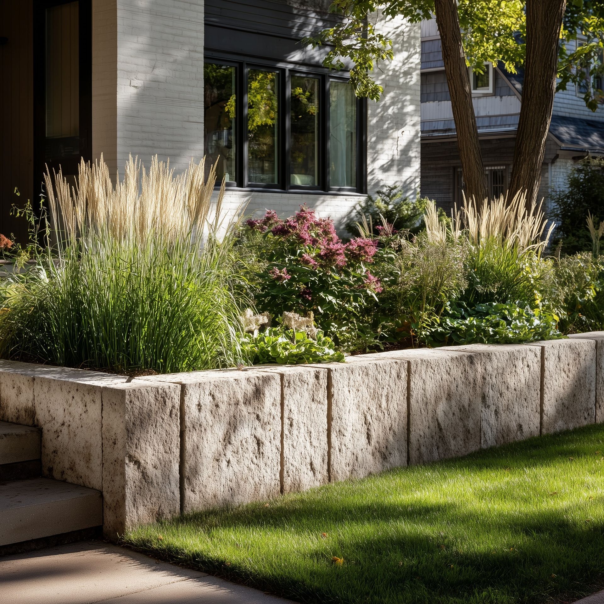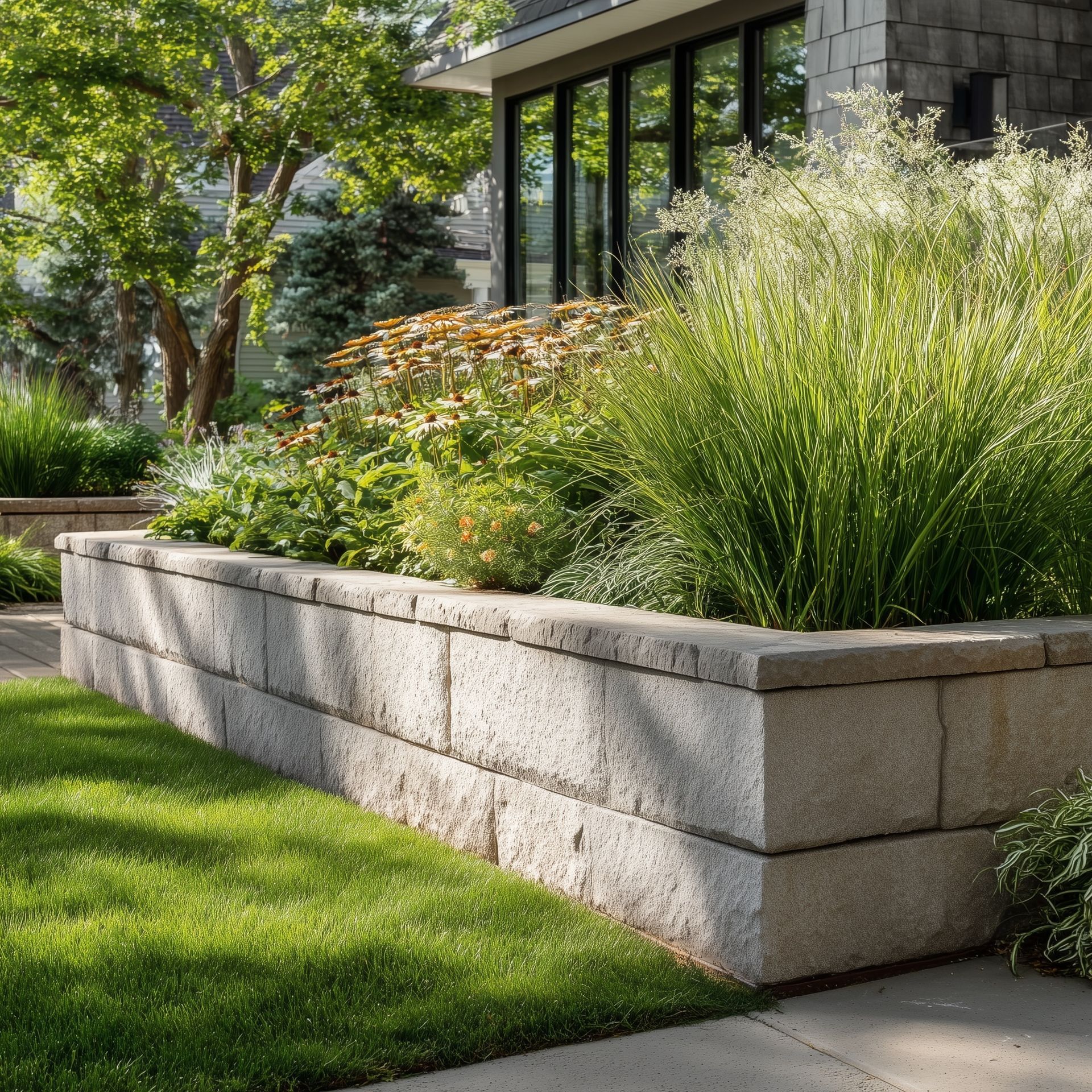 Natural stone like Fond du Lac or Lannon is both durable and visually timeless. For more cost-sensitive projects, we use high-quality segmental retaining wall systems designed to perform well through freeze-thaw cycles.