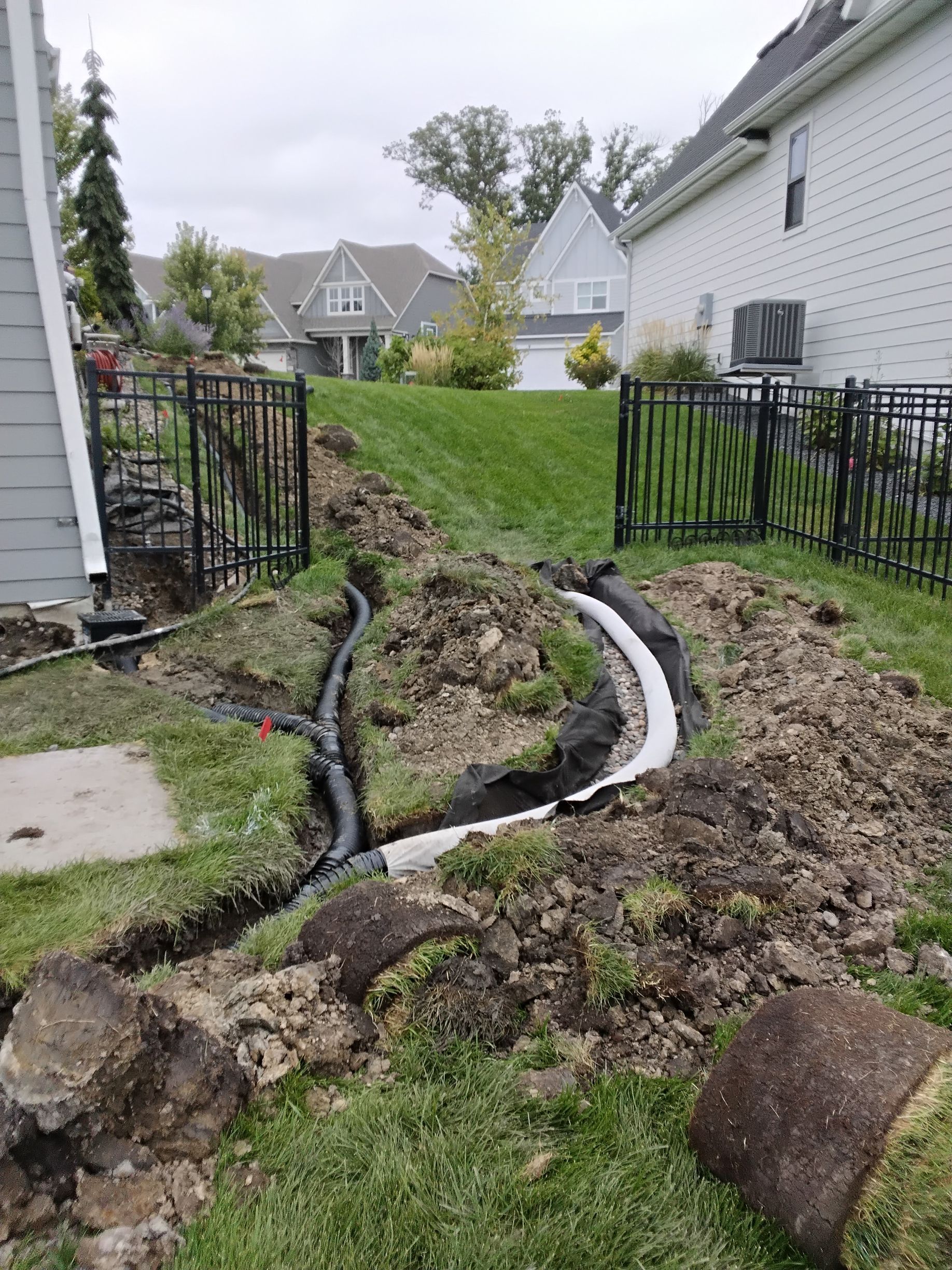 We did exactly this on a Plymouth project in the Enclave at Elm Creek where the homeowner was dealing with a saturated backyard, frost heave damage, and a sump pump that ran constantly.